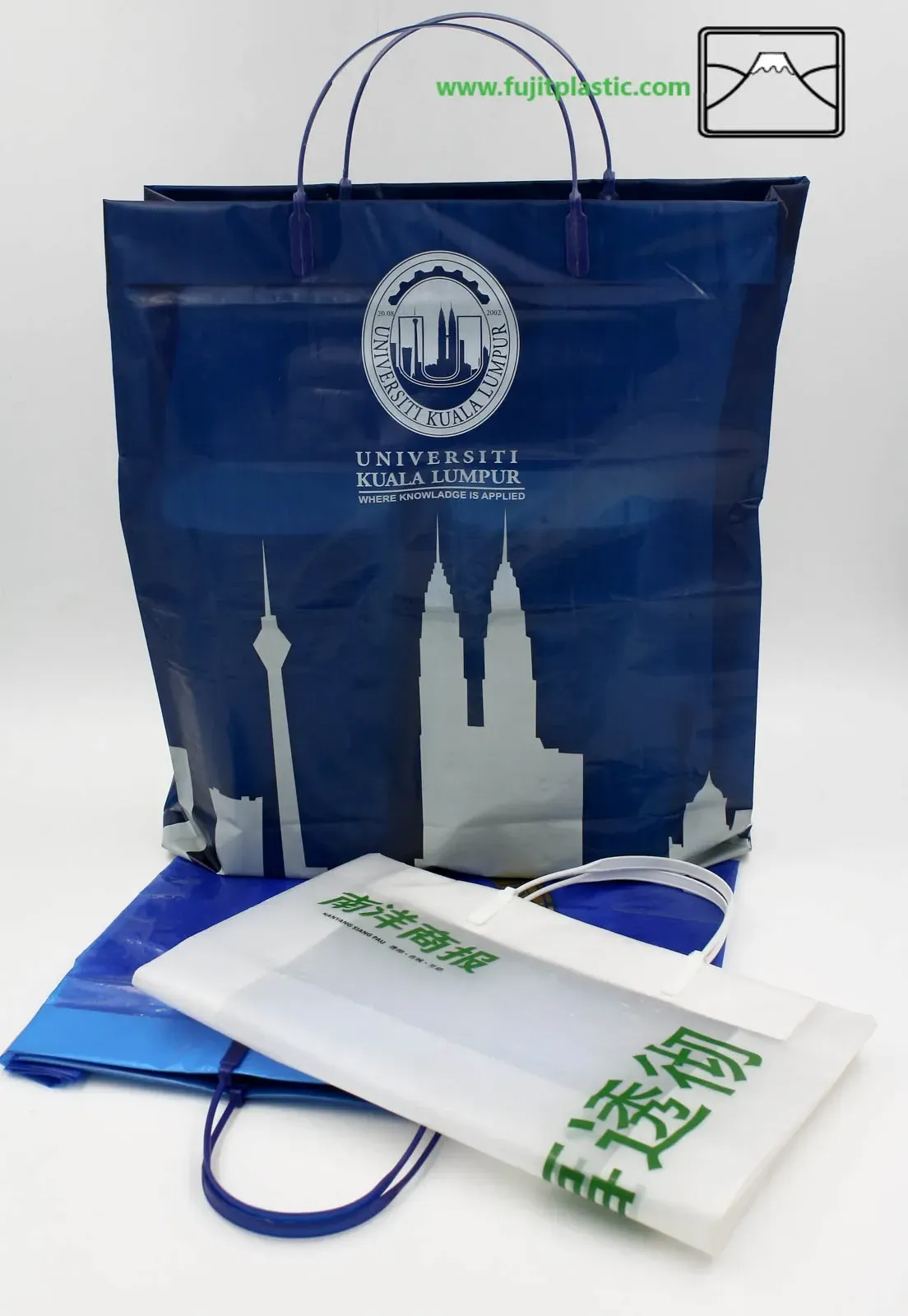 A bag equipped with a hard plastic handle.